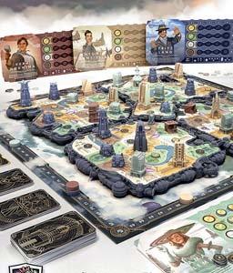 Prove your genius by using a brilliant spatial auction system to win sites to build in, earning favor across Islands and factions, scoring secret and public objectives, courting mysterious Patrons, and building your own unique Wonder.